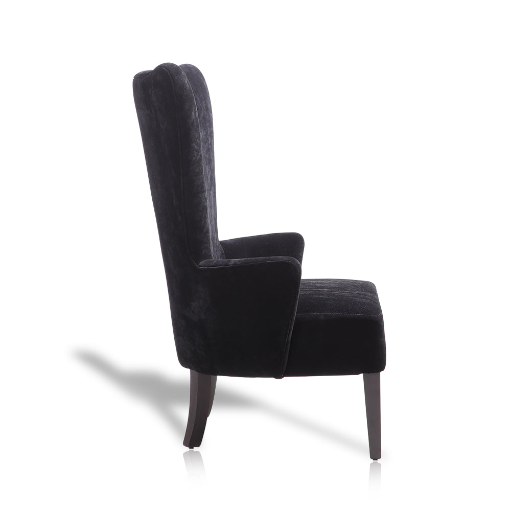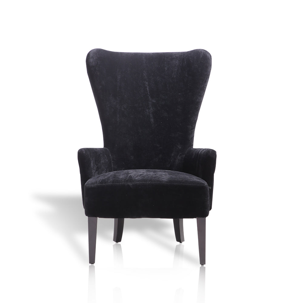 经典曲线翼形椅子,采用丰富的天鹅绒面料,窑干桃花心木框架,带衬垫聚氨酯泡沫。尺寸:长75x宽76x高112厘米承重能力:100公斤
